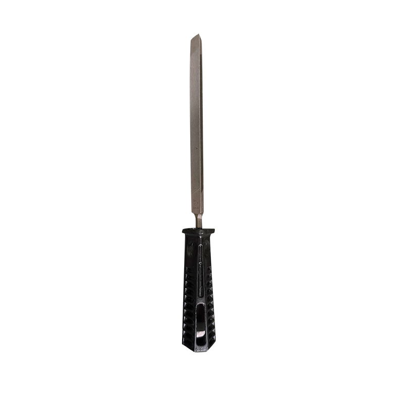 Fabricada con acero templado de alta calidad, ofrece una excelente resistencia al desgaste y una larga vida útil. El mango negro ergonómico brinda un agarre firme y cómodo, facilitando el control y la seguridad durante el trabajo.